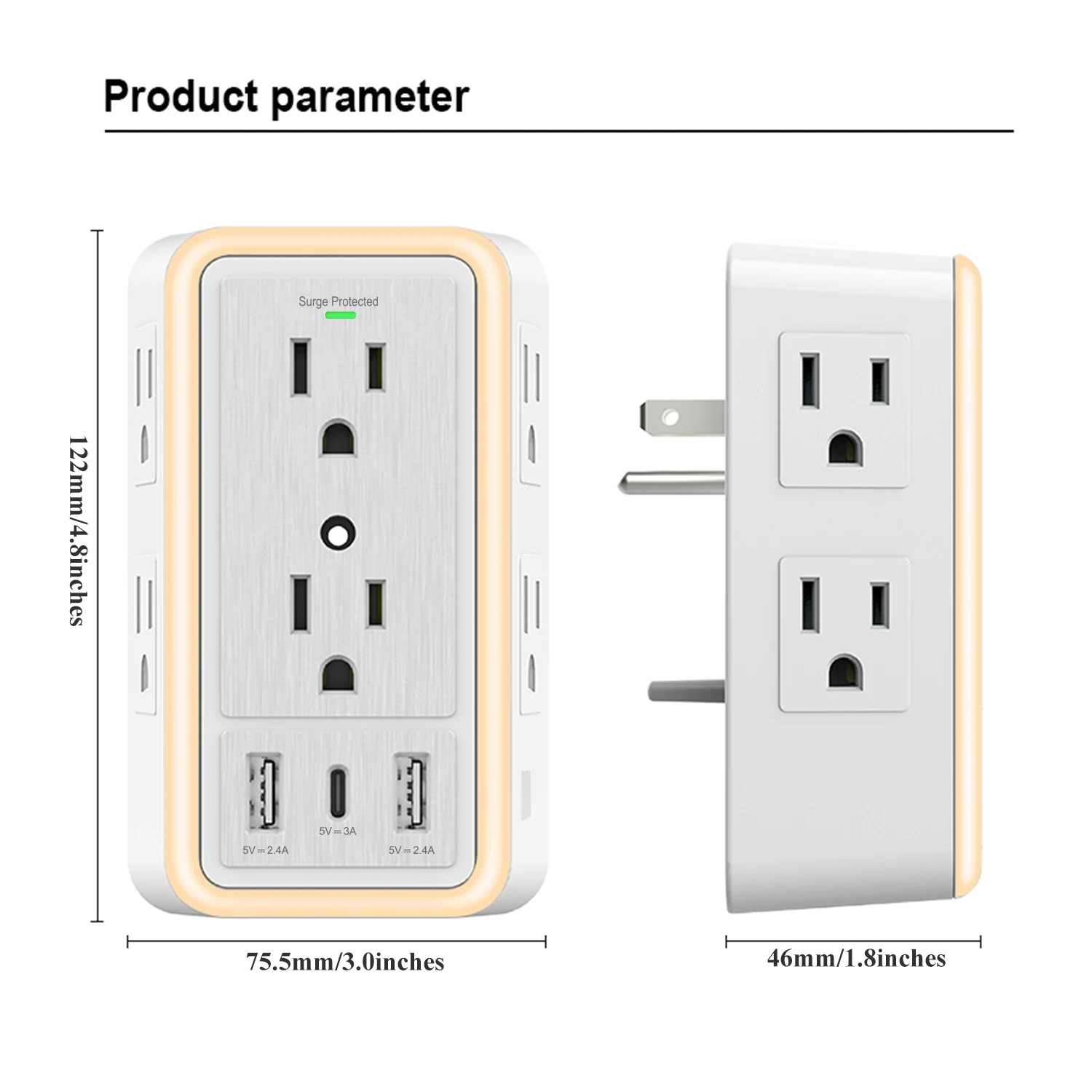 Be the first to review “USB Wall Charger Surge Protector 6 Outlet Extender with 3 USB Charging Ports (1 USB C Outlet)and Night Light for Home, Office” Cancel reply